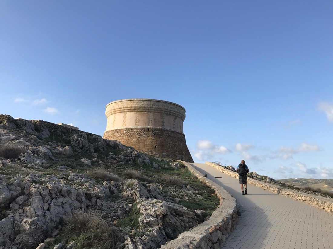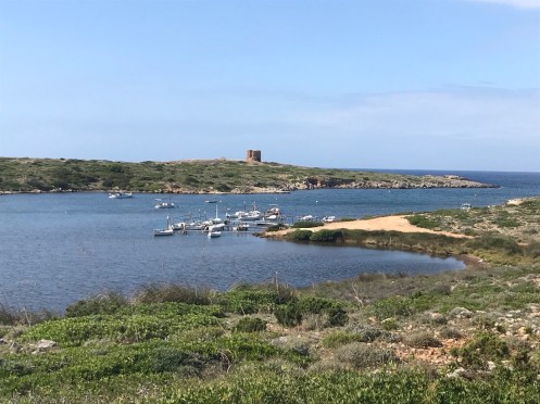 Aujourd’hui nous avons fait un parcours en deux parties. Ce matin nous sommes sortis du chemin pour aller voir la Tour de Fornells, une tour de défense construite en 1801 par les Anglais pour protéger le port.