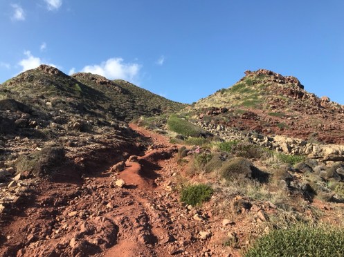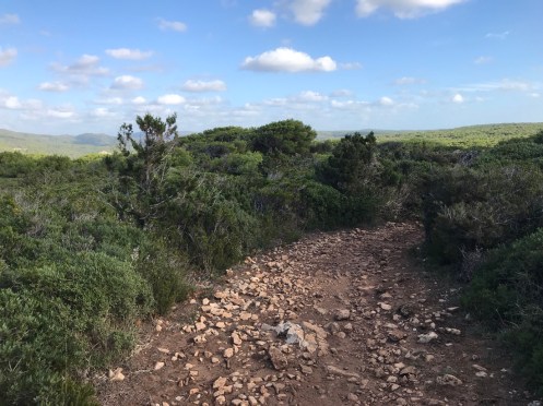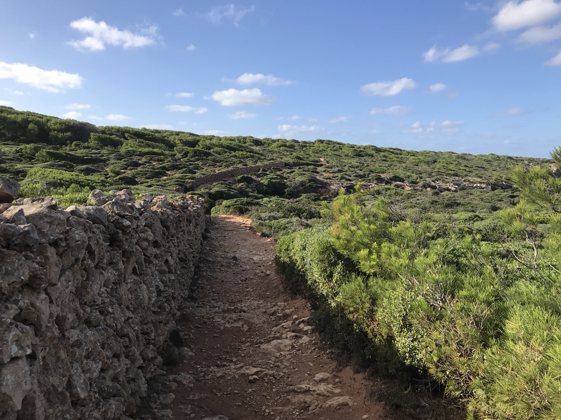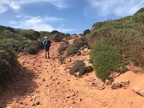 Ce que dit notre guide « Cami de cavalls » de Sergi Lara sur le troncon Binimel-Là ==> Cala Morell : « Il s’agit du tronçon le plus difficle de tout le Cami de Cavalls car il exige des conditions météorologiques optimales, une bonne forme physique et une solide expérience de la randonnée. A la longue marche entre des montagnes et des falaises sauvages, il faut ajouter peu de voies échappatoire et un manque total de soutien logistique. Pour les amateurs de nature et les randonneurs chevronnés, il représente l’apothéose complète, la rencontre directe avec les valeurs méditérannéennes en voie d’extinction dont on pourra intensément profiter grâce au balisage récent de la route emblème de Minorque ».