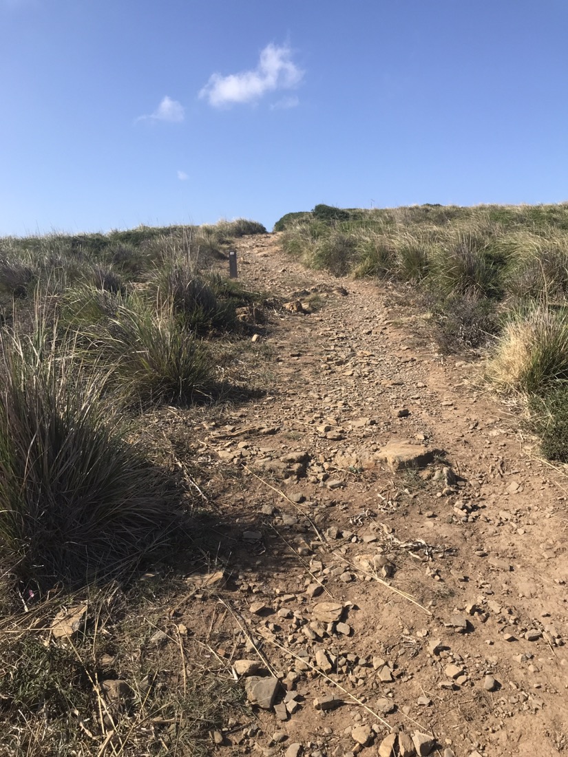 Lá, nous allons marcher tout le long du petit mur qu’il y a sur la crête.