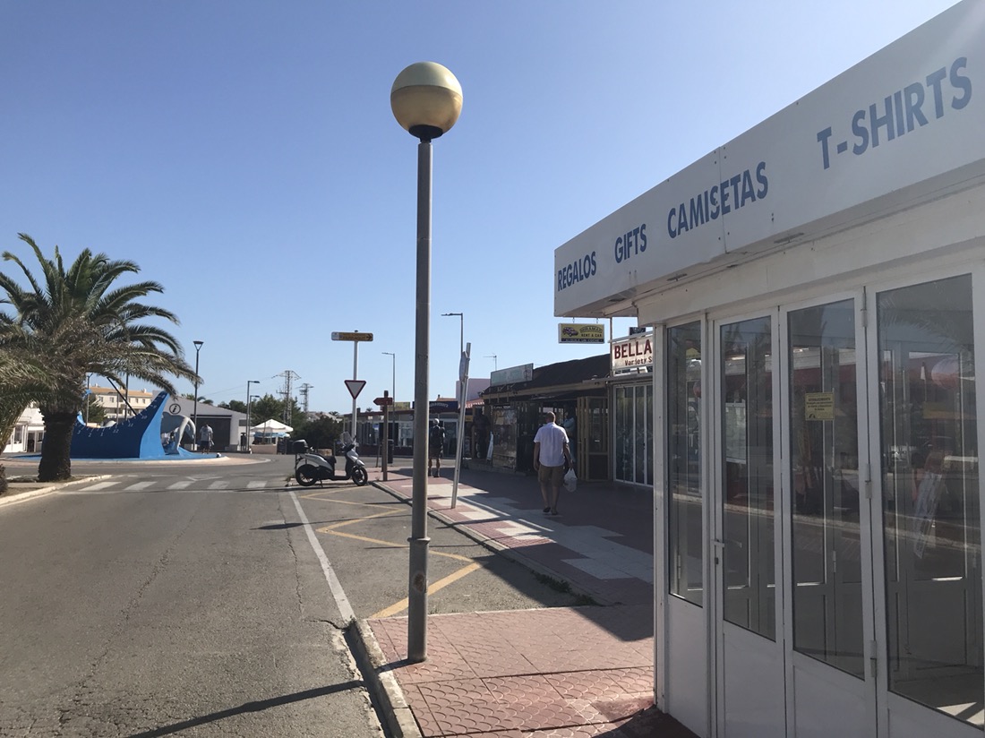 Cala en Blanes. Enfin une urbanisation !!! Je préférais marcher dans notre désert. Ici ce ne sont que supermarchés, articles de plage … sur une très longue distance.
