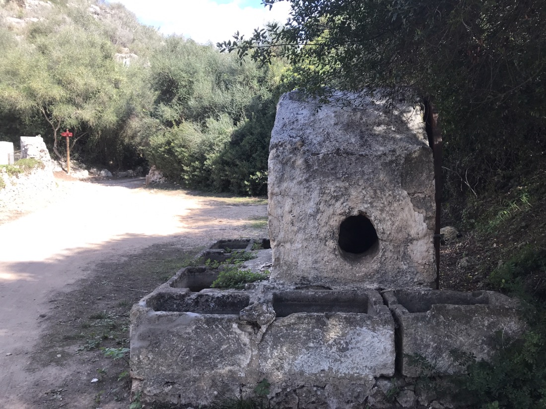 Un puit et les auges pour les animaux.