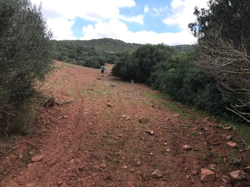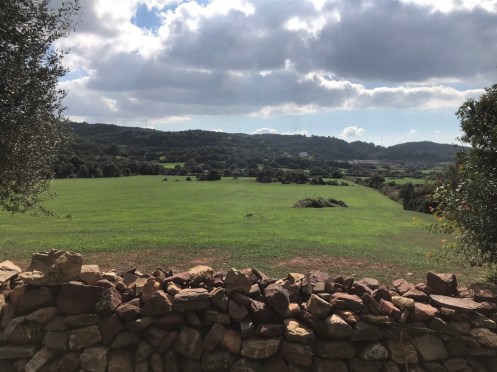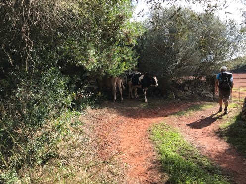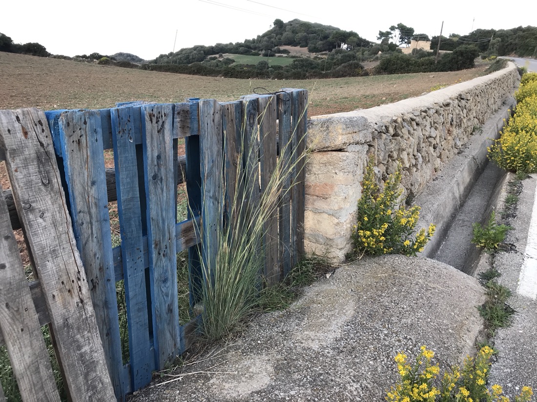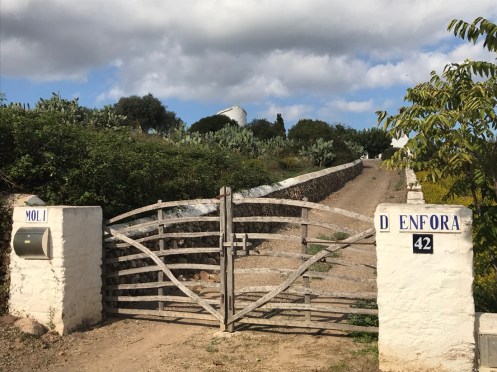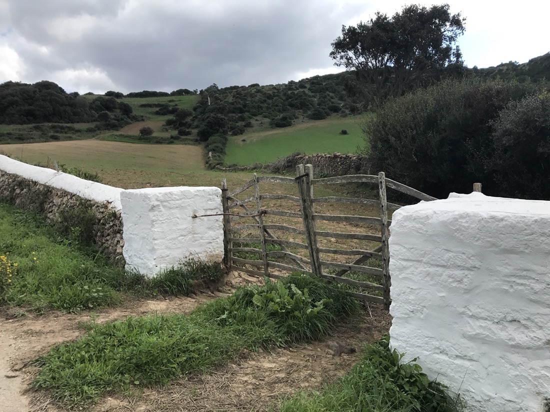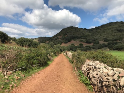 Il n’y a pas grand chose à voir à Ferreries. Nous cherchons un chemin de randonnée. À la mairie un gentil monsieur nous en indique un qui a l’air sympa. Ça nous ferait faire une boucle et pour aller à Es Mercadal où nous avons retenu pour dormir, nous reprendrions le bus. En regardant une carte on trouve un chemin pour le VTT qui nous permettrait d’aller à Es Mercadal à pied. Nous voilà partis sur ce chemin où nous trouvons un panneau indiquant Camí d’en Kane. Nous ne pensions pas trouver ce Camí là, pour nous il va de Es Mercadal à Mahon mais il ne passe pas à Ferreries. Changement de programme nous allons prendre le Camí d’en Kane.