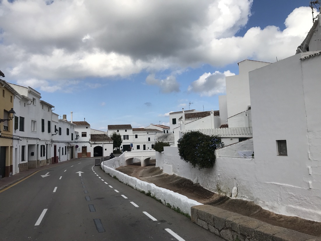 Es Mercadal. Jolie petite ville toute blanche.