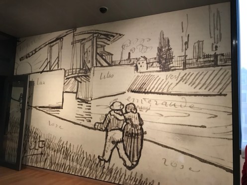 J’aime beaucoup cette visite malgré le ciel gris : les vélos omniprésents, l’eau et tous les jeux de reflets qu’elle permet, les panneaux joyeusement explicites, la belle photo « volée « de Van Gogh ( tableau que je ne connaissais pas ) bref….le voyage continue à me combler ! Merci mille fois Aline…mais au fait on n’a pas discuté des tarifs. !!? Debout…au boulot ! Bizzzzz à partager ! Pour moi « marché du quartier «, expo sur Feucheres à 11h, ciné docu à 17 h dans le quartier, puis ciné Pablo Neruda à 19h. Faut y aller, zou Envoyé de mon iPad
