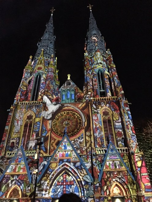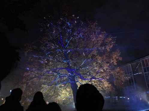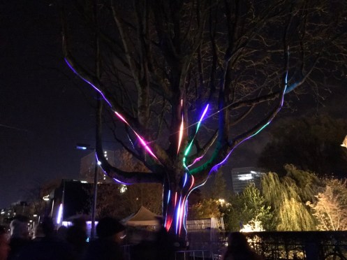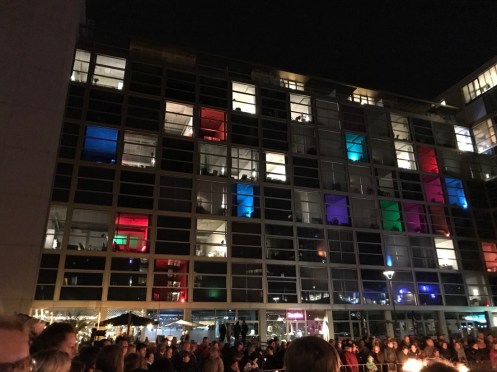 Cette fête de la lumière n’est pas comme celle de Lyon où on se déplace comme on veut, ici c’est un circuit, tout le monde marche dans le même sens en suivant les flèches.