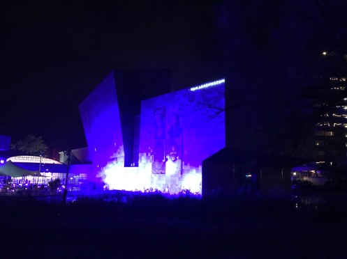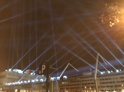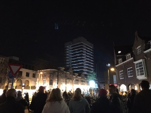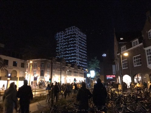 Comme nous avons toujours beaucoup de chance, c’est la fête de la lumière à Eindhoven. Nous allons suivre ce panneau pendant 6 km !!! Nous comprenons pourquoi, lorsque nous sommes arrivés à la gare d’Eindhoven, nous nous serions crus à 6 h du soir dans le métro parisien !!!