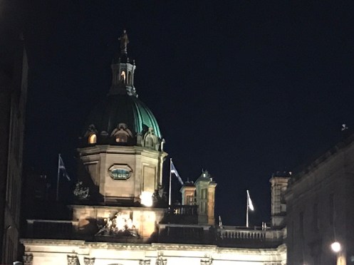 Nous arrivons à l’hôtel assez mouillés après avoir fait 17 km !!! Le sèche-cheveux sera bien utile …Ce soir nous mangeons espagnol au Café Andaluz, un restaurant de tapas. Non, nous ne boudons pas les restaurants écossais mais ceux qui étaient ouverts étaient bondés. Retour vers l’hôtel, les rues sont pleines de monde et les boutiques sont ouvertes.