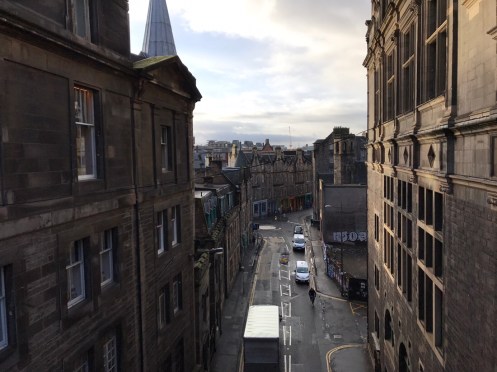 Photo prise depuis la terrasse de la partie moderne du National Museum of Scotland.