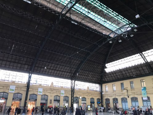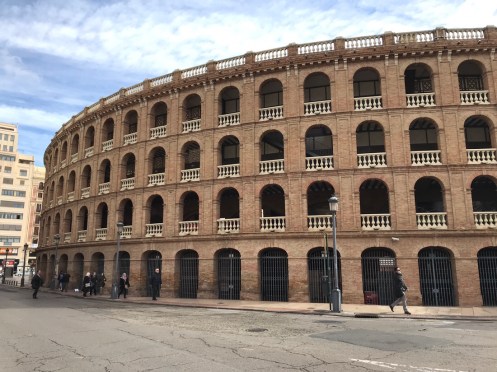ValenciaSur un rond-point à côté de l’hôtel. Les arènes de Valencia. La Gare du Nord. Une petite merveille d’art nouveau. Nous allons nous renseigner sur les horaires des trains pour l’Alcudia de Crespins. Après avoir lu le récit d’un pèlerin qui conseillait de sauter les trois premières étapes car elles sont sur des routes encombrées … et sans intérêt, j’ai décidé de suivre son conseil.