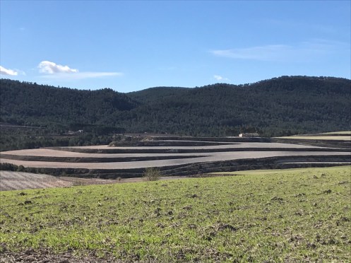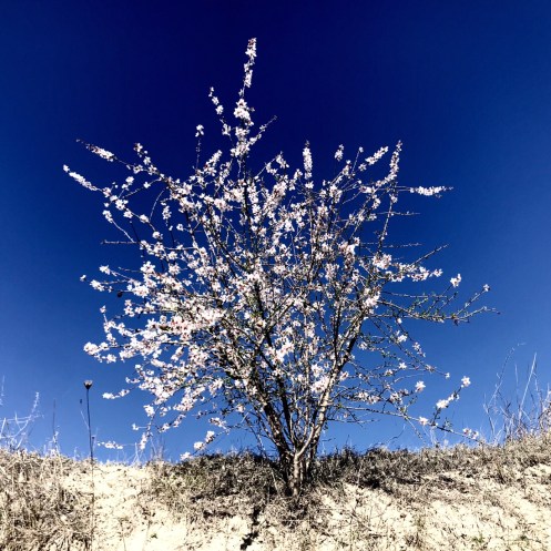 Depuis hier, nous montons insensiblement et la végétation change. Finis les orangers, ici ils gèlent. Nous sommes dans une région de vignes et d’amandiers.