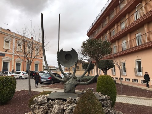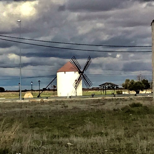 Nous sommes arrivés à 12 h à la Roda. Nous nous arrêtons assez vite pour manger à l’abri d’une capitelle. Et oui le vent est toujours là, juste un tout petit peu moins fort, nous sommes dans la Mancha, il va peut-être falloir s’y habituer !!!