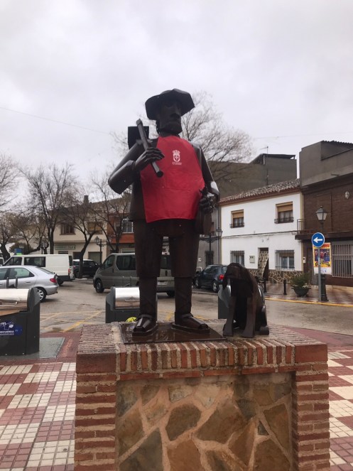 Coucou les randonneurs, avez-vous bien dormi après cette demi journée éprouvante ? Apparemment le froid arrive aussi en Espagne ! J’espère que votre chambre d’hôtes vous a permis de récupérer agréablement… Qu’en sera-t-il de ce dimanche ? Ici il a plu cette nuit et le ciel est très nuageux, je prévois d’aller au cinéma à 11 h ( film programmé par Amnesty ) donc la météo ne m’inquiète pas trop … Je vois que Don Quichotte laisse pas mal de traces dans la région…j’aime bien Je vous souhaite meilleur temps pour cette journée et bonne rando…avec de belles photos….En route…