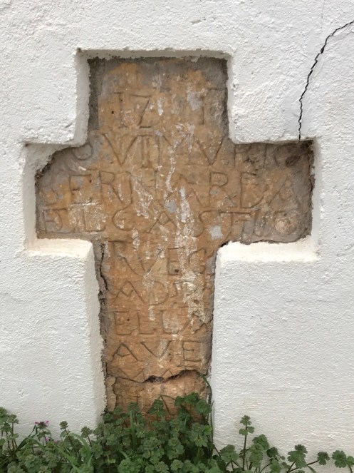 La croix que l’on voit au bas du mur est une pierre gravée.