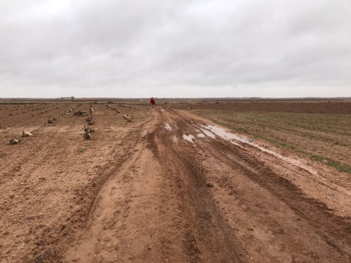 Maintenant c’est moins bien, il pleut, la terre colle aux chaussures qui pèsent une tonne. Bien sûr le vent n’a pas faibli et d’après la météo nous avons un ressenti de 0 degré. La vie est belle !!!