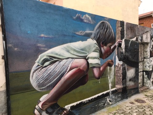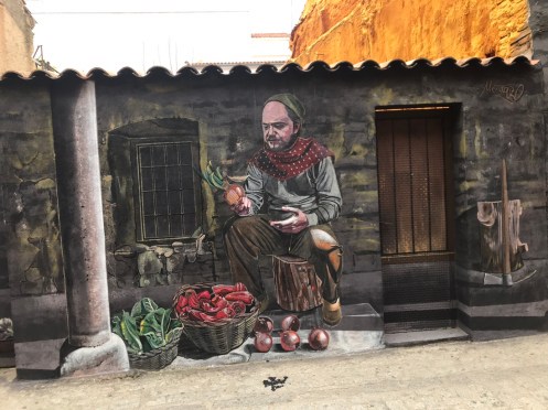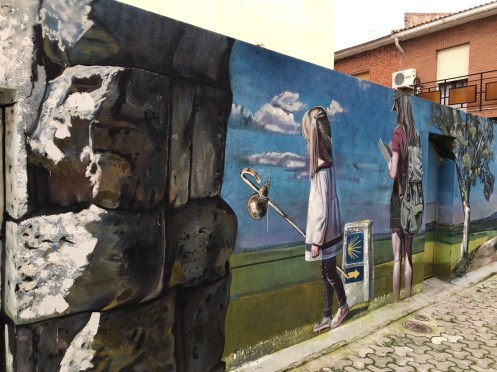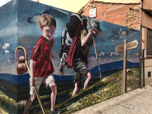 Bonjour Bien dormi ? Que dit le temps ? Ici c’est fort nuageux mais moins frais ! J’aime bien les illustrations dans les rues d’Escalona mais je trouve moins sympas certains de vos chemins… Pour Loc nous savons depuis hier que l’ulcère est cancéreux, mercredi à Montpellier scanner général à la recherche probablement de métastases…en principe elle irait chez elle pour le WE … Noémie d’après le médecin ( via Maryse ) aurait un « rétro virus « , elle avait tout de même plus de 39…pauvrette… Je pars pour les obsèques d’une amie près de Sommières…Je vous laisse donc, bon petit dej et bonne rando…sous le soleil j’espère !!