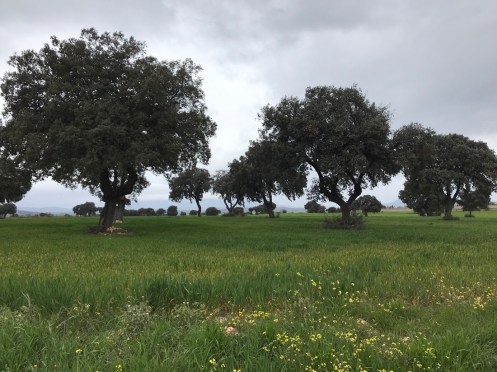 La journée a été agréable, malgré le temps gris, il ne faisait pas froid. Le paysage change, il est enfin vallonné. Nous sommes à 530 m d’altitude, nous arrivons mardi à Avila qui est à 1180 m d’altitude … Aïe, aïe, aïe ça va monter !!!