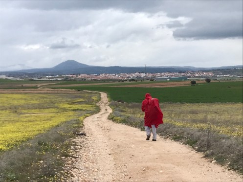 Au loin Almorox. Nous avons tout de même mis la cape de pluie pour trois malheureuses gouttes.