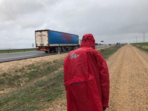Et voilà la pluie est de retour depuis Bercero, par chance pas très forte. Petit passage au bord de l’autoroute, ça roule.