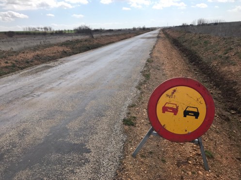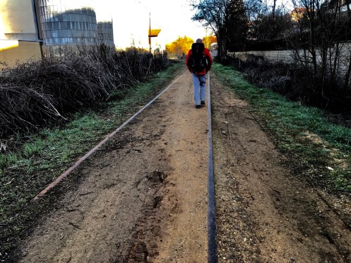 Jusqu’à cet endroit nous marchions sur la route. Joli passage au milieu des chênes. Nous avons même croisé la voie ferrée qu’ils sont en train de finir d’arranger en voie verte. Peut-être qu’un jour le chemin passera dessus ???