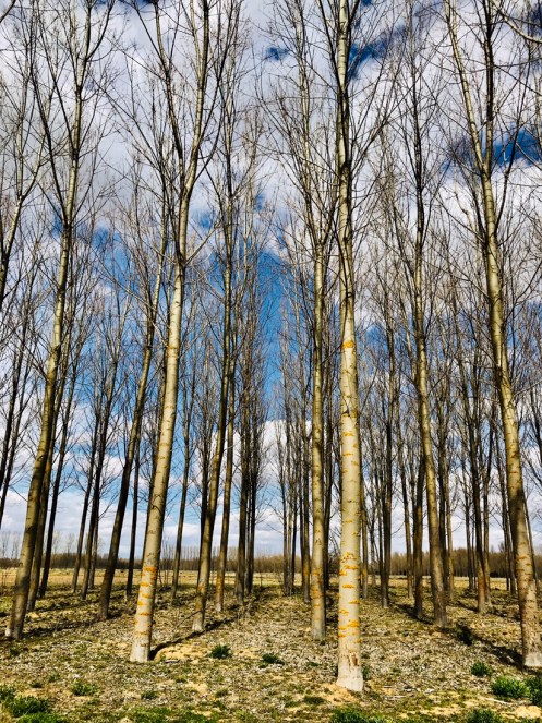 Beaucoup de bosquets de peupliers. Ils ont l’air de les exploiter car nous avons vu des parcelles qui ont été coupées.