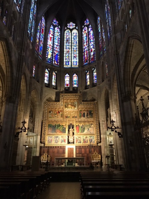 Intérieur très aéré grâce aux vitraux. C’est celle qui a la surface de vitraux la plus importante d’Europe après celle de Chartres.