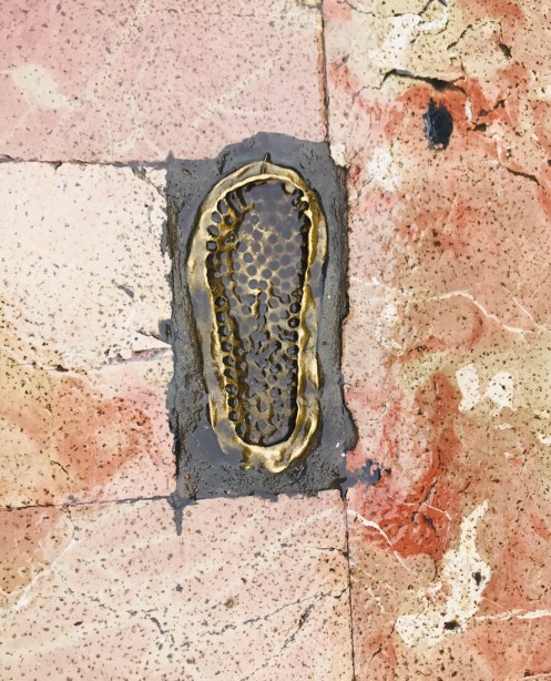 Un pas en métal sur le sol.