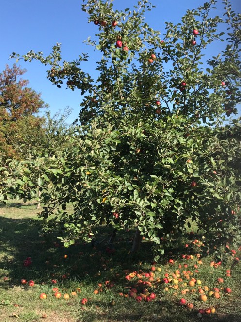 Nous retrouvons la campagne et les arbres qui croulent sous les fruits, la plus part du temps pas ramassés. Les premiers jours il y avait des prunes que nous avons mangées avec plaisir. Maintenant ce sont des pommes.