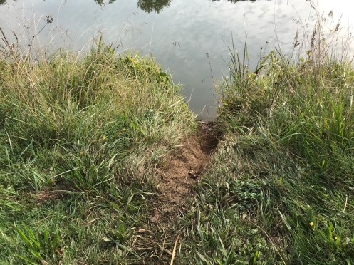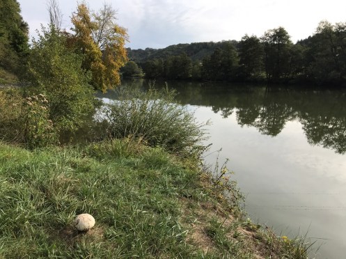 Départ très rapide le long de la Meuse. Régulièrement nous voyons des traces pleines de terre en travers de la route, ce sont des animaux qui vont boire. (Ou alors prendre leur bain du soir !!!).