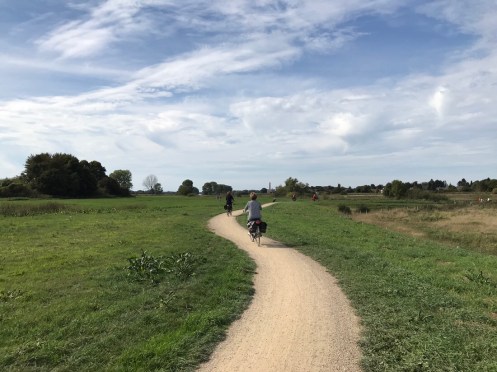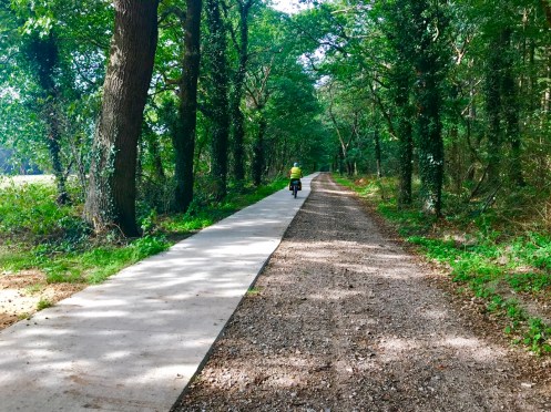 La flèche wallonne (Yves) est en pleine forme, il doit être dopé au pot belge… j’aperçois tout le temps un point jaune au loin et lorsque j’essaie de le rattraper, j’ai beau forcer comme une malade je n’y arrive pas. La prochaine fois j’achète un scooter, surtout qu’ici ils ont le droit de rouler sur les voies vertes !!! Heureusement qu’il y a les côtes pour me venger !!!