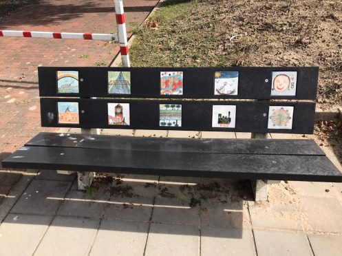 Gennep. Il y avait plein de bancs décorés avec des carreaux peints par des enfants.