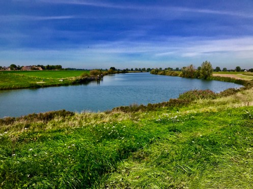 Route très agréable aujourd’hui, pratiquement tout le temps sur les digues, donc en hauteur.