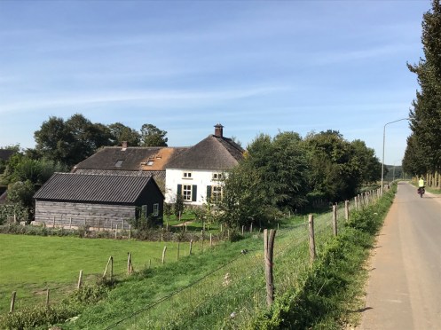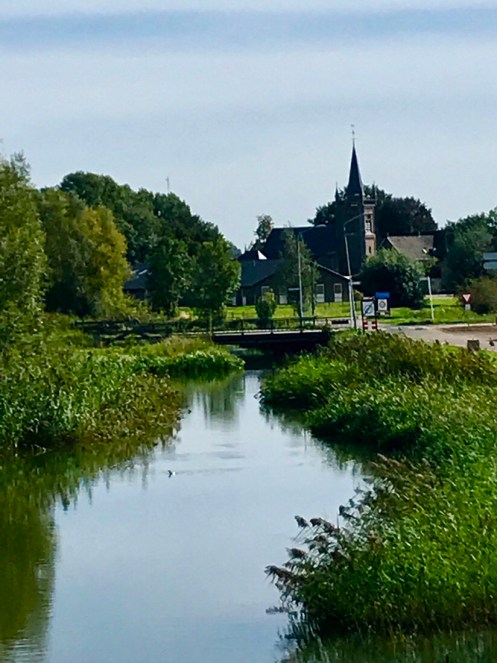 Petite promenade matinale toujours aussi agréable…sans bosses et où l’eau paraît omniprésente…le soleil vous reste fidèle, c’est vraiment génial…!! Au fil des jours l’allure des villages se modifie, l’architecture des maisons évolue , je me cultive….Merci les randonneurs…! La visite au CHU a confirmé que….tout va bien, RV le 16 septembre 2019 !! La chaleur persiste on ne range toujours pas les toilettes estivales, mais la nuit est à 19°, ça va, on dort ! Très bonne journée, pédalez bien, photographiez, admirez, profitez de tous les instants…Allez, en selle !!