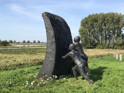 Retour sur le bord de l’eau pour quitter Cuijk. Ici la digue est métallique.