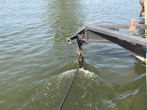 Aujourd’hui nous n’avons pris qu’un seul bac. Ils sont toujours guidés par un câble.