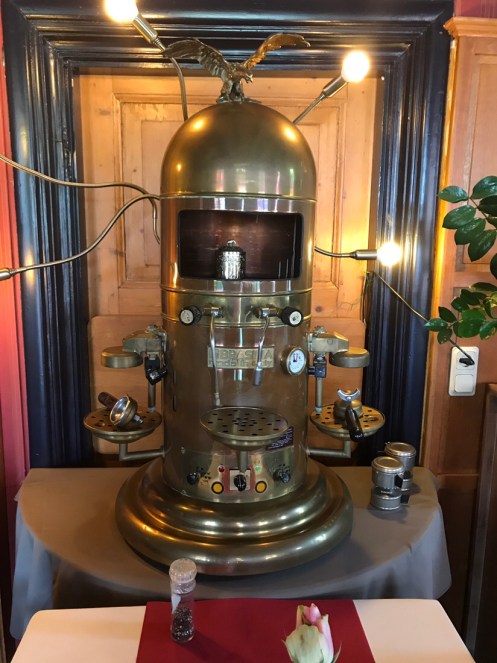 Et nous voici arrivés là où nous allons coucher. Machine à café.