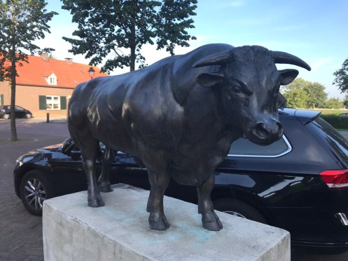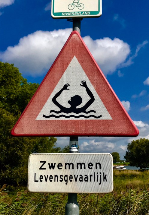Là vraiment pas de doute nous sommes loin du Midi…l’architecture, les moulins, l’eau omniprésente…mais le ciel était cependant d’un bleu intense le matin.!! La collection de panneaux s’accroît…certains fort explicites, vue la difficulté de la langue c’est pas mal …La « blonde d’Aquitaine « …est assez ..virile !! de quoi faire rêver notre taureau du Jean Jaurès.. Ici il fait toujours beau et chaud…ma journée s’annonce chargée : une réunion dans le quartier ce matin, une ce soir en ville, entre temps repas à Palavas avec Maryse et ses neveux alsaciens…zou je vais me doucher… Très bonne rando…à demain matin !!!
