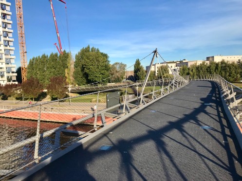 Courtrai – Lille – 32 kmPasserelle pour les vélos au dessus de la Lys. Chemin de halage au bord de la Lys jusqu’à Halluin.