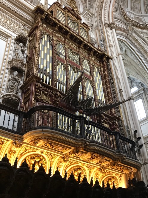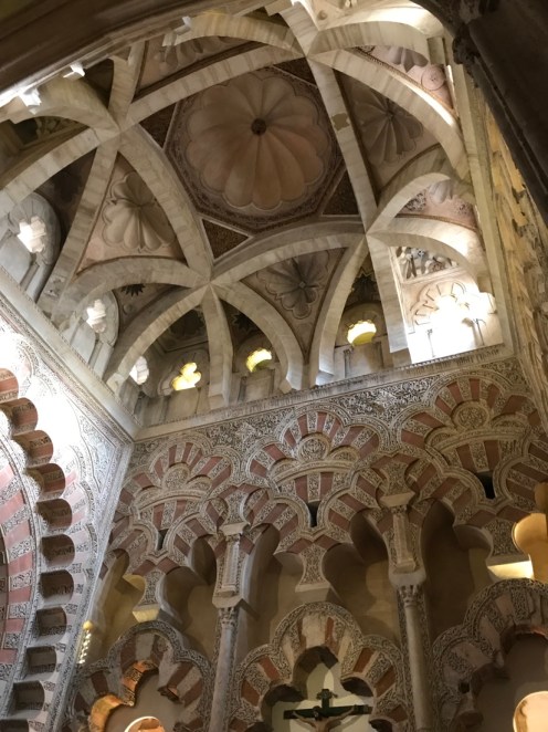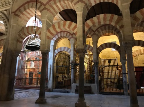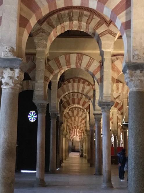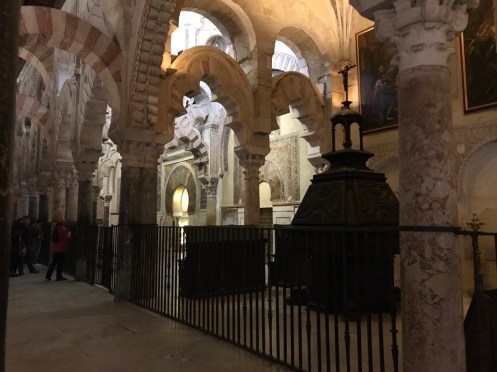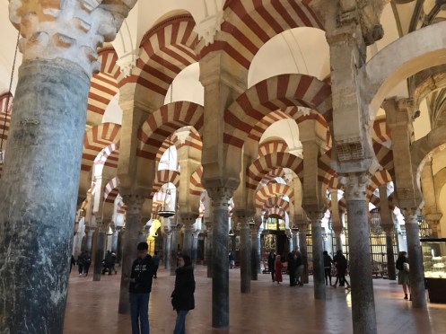 Nous voici enfin dans la Mosquée-Cathédrale de Cordoue. Vendredi elle était fermée, samedi lorsque nous sommes sortis de table c’était trop tard. En fait nous avons eu beaucoup de chance d’aller voir hier le site archéologique car aujourd’hui il fait gris.