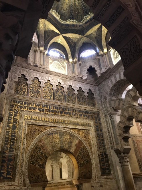 Splendide, un régal cette balade dans la mosquée-cathédrale et toujours l’incitation à se cultiver : je viens de chercher ce qu’est un mirhab, j’ignorais, heureusement que vous me promenez….avec vous ! Quelle richesse de monuments dans cette ville de Cordoue et que de traces du passage des musulmans… Alors, mes petites promenades matinales vont prendre fin…dommage mais peut-être demain encore !!! Très bonne journée, ici la pluie a cessé, le soleil est prêt semble-t-il à vous accueillir Bisous
