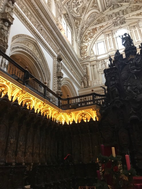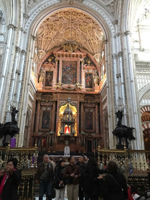 Quand Cordoue fut reprise aux musulmans en 1236, on ne détruisit que quelques rangées de colonnes pour y créer La Chapelle Royale décorée de stucs mudéjars. Au XVIème siècle les chanoines décidèrent de doter leur cité d’un édifice beaucoup plus somptueux et dans le goût du jour. Ils firent démolir une partie importante du centre de l’édifice pour y édifier une cathédrale de style gothique, renaissance et baroque. Par la suite Charles Quint regretta la transformation de cet édifice : « vous avez détruit ce que l’on ne voyait nulle part pour construire ce que l’on voit partout ».