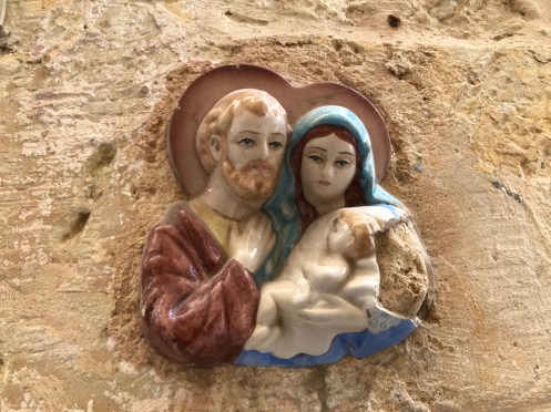 La Cathédrale St Paul. Le dôme. Détail de la crèche. Le sol est rempli de dalles en marbre polychrome dédiées à des évêques ou des prêtres. J’ai oublié de dire que c’est l’un des plus beaux exemples d’architecture baroque à Malte.