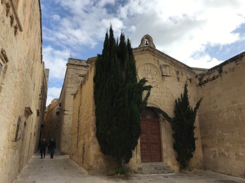 Nous avons pris un bus pour aller visiter Mdina et Rabat à l’intérieur de l’île. Nous approchons de Mdina et ses remparts.Ah bien ça alors, une de mes princesses !!!Trêve de plaisanterie, on commence la visite en passant par la porte principale qui date de 1724. Là, les choses sérieuses commencent avant de trier mes photos d’aujourd’hui, j’en ai compté… 470, j’ai éliminé les doubles et les mauvaises mais il en reste beaucoup. Dur, dur de faire un choix !!!L’église des Carmélites.