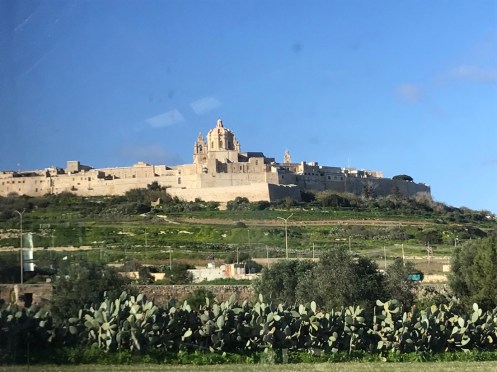 Nous avons pris un bus pour aller visiter Mdina et Rabat à l’intérieur de l’île. Nous approchons de Mdina et ses remparts.Ah bien ça alors, une de mes princesses !!!Trêve de plaisanterie, on commence la visite en passant par la porte principale qui date de 1724. Là, les choses sérieuses commencent avant de trier mes photos d’aujourd’hui, j’en ai compté… 470, j’ai éliminé les doubles et les mauvaises mais il en reste beaucoup. Dur, dur de faire un choix !!!L’église des Carmélites.