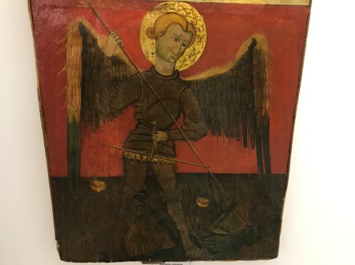 J’ai photographié tous les tableaux de cette pièce. C’était trop beau. Au passage un petit St Michel. Stop ! On change de pièce.