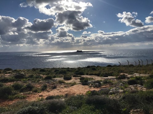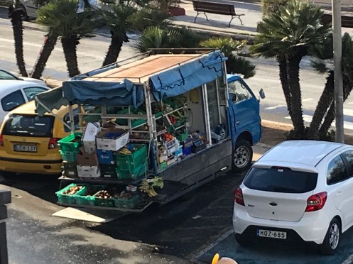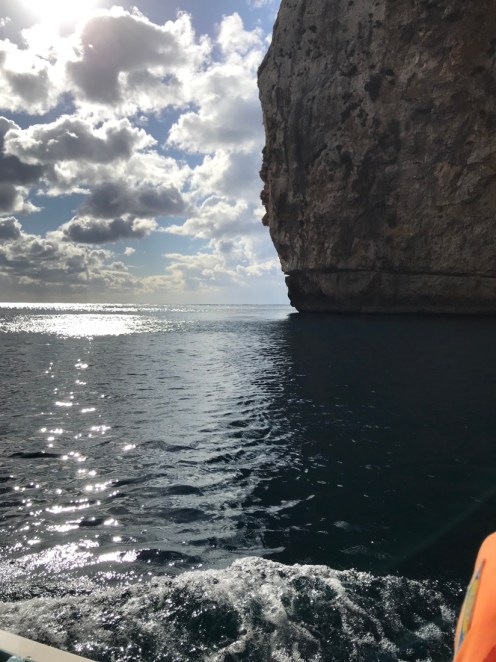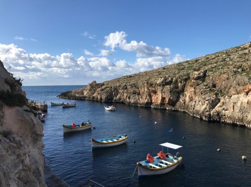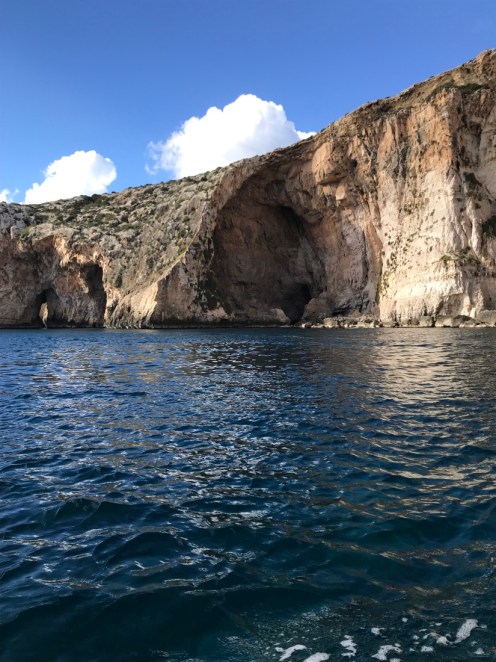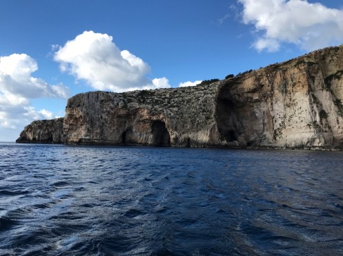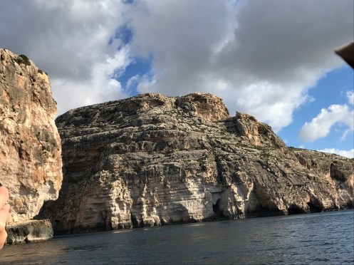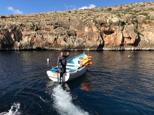 Merci Tatie Arlette pour tes commentaires, grâce à toi je vois si j’ai mis des choses qui peuvent prêter à confusion. L’île Manoel est juste une petite île devant laquelle le ferry passe pour aller à La Valette. Hier nous avons revisité La Valette car le 1er janvier tout était fermé.Un camion épicerie. Aujourd’hui, nous avons pris le bus pour aller dans le sud de l’île voir les grottes bleues. Photo prise du bus à Qrendi. Qrendi toujours. La route est bordée de petits murets. Tout le monde descend au bord de la route et là le ravissement. Nous descendons jusqu’au bord de l’eau pour embarquer dans ce style de bateau.