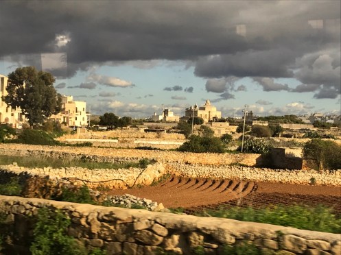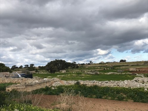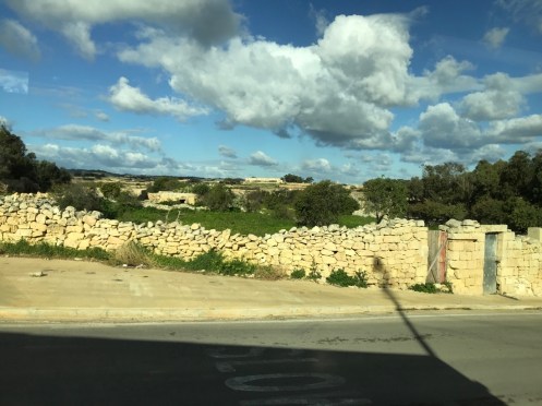 Le trottoir est bien large, nous ne risquons rien. La campagne environnante. Après un film en 3D sur la construction des temples…Et la visite d’une exposition. Nous allons voir le temple Hagar Qim. Bien plus impressionnant que celui que nous avons visité à Gozo