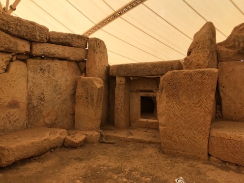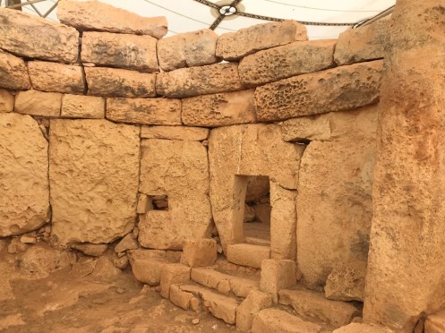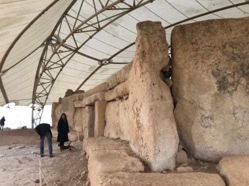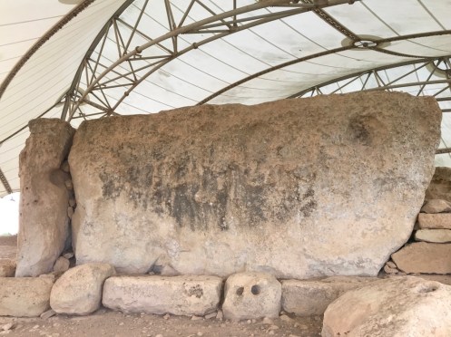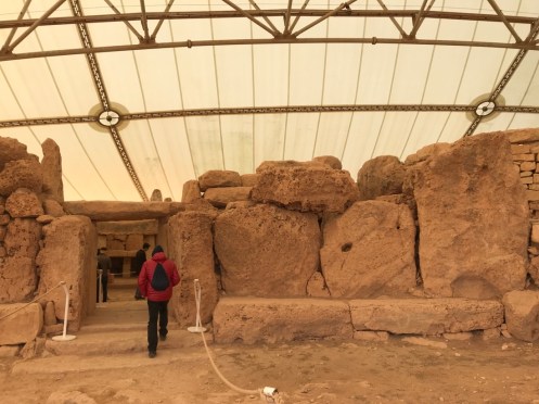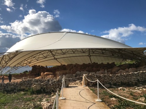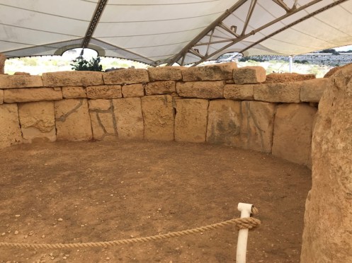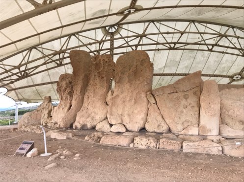 Il est protégé des intempéries par une immense structure qui laisse passer le jour mais pas la pluie.Ils avaient une belle vue. Deuxième temple un peu plus loin. Mnajdra.