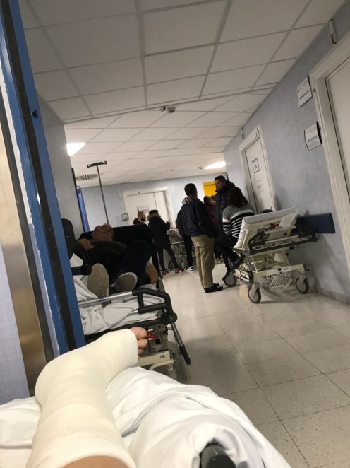 J’ai passé plus de 24 h dans un couloir. Déplacée de temps en temps. (La photo à été prise à midi pendant les visites des familles).