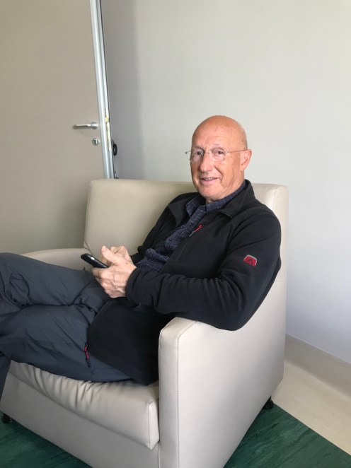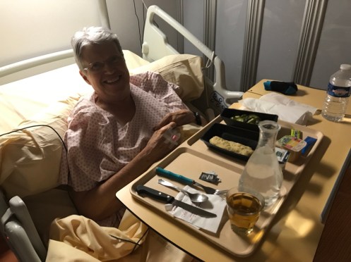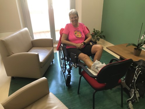 18 h. Je suis en attente dans une salle à 8 lits. Tiens du déjà connu… mais nous ne sommes que 4 à attendre et j’ai un boîtier pour appeler si j’ai un problème. J’attends juste qu’un brancardier soit libre pour me monter en orthopédie. Anne est arrivée, elle remplace Yves qui a dû sortir. Un seul accompagnant par malade. Ils finissent par partir car ça ne sert à rien d’attendre pour me voir monter dans une chambre.