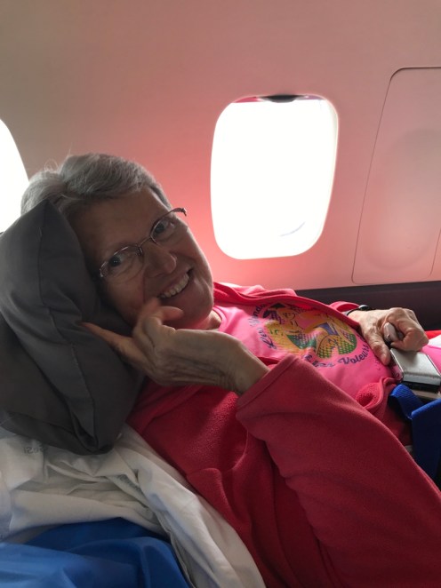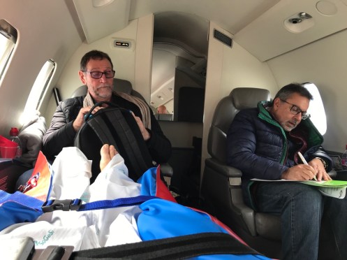 Et nous voilà partis pour 1 h30 de vol. Nous sommes en avance d’une heure sur l’heure de départ prévue. Pas de problème un avion sanitaire à priorité. Il part quand il veut.